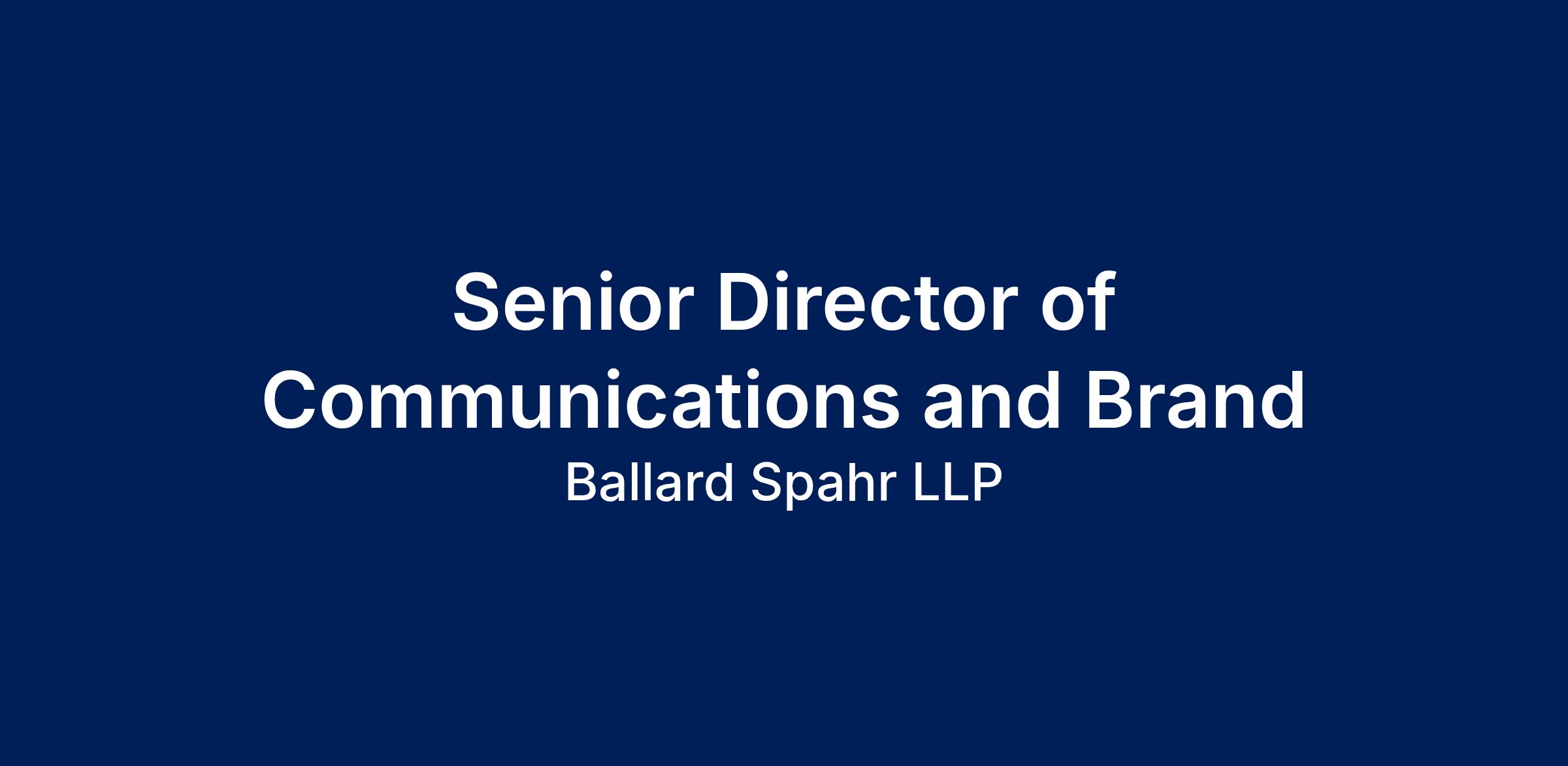 Department: Marketing/Communications Ballard Spahr is a renowned national law firm with more than 750 lawyers across 18 offices in the United States. A career at Ballard Spahr offers a diverse group of mentors, colleagues, and friends, and strong leadership that provides support and encouragement for career growth. We are seeking an accomplished Senior Director of Communications & Brand to elevate the firm’s national visibility, strengthen its market position, and shape a cohesive, compelling brand narrative across all channels. This senior leader oversees integrated marketing communications, media relations, editorial strategy, digital presence, marketing technology, brand governance, and creative direction. In this highly strategic and influential role, the Senior Director partners closely with firm leadership, practice and industry leaders, business development teams, and external consultants to develop and execute communications and brand strategies that support business objectives, enhance client engagement, and reinforce the firm’s reputation for excellence, innovation, and client service. The ideal candidate brings a blend of strategic vision, operational excellence, creativity, and sound judgment—along with the ability to influence at the highest levels of the organization while leading a high‑performing team of communications, digital, content, and brand professionals. This hybrid position offers a work schedule of 3 days a week in the office. Why Join Us? Innovative Work Environment: Become part of a forward-thinking firm that enjoys substantial support and visibility from the firm’s executive leadership. Professional Development: Take advantage of continuous learning opportunities and avenues for career growth. Inclusion: Join a Business Resource Group and share cultural, experiential, or job-related interests, experiences, and/or backgrounds. Impactful Contributions: Play a pivotal role in developing industry-leading solutions that make a significant difference in legal practice and client service. Your Role: As a Senior Director of Communications & Brands Development Manager within our Marketing/Communications team you will: Develop and execute a firmwide communications and brand strategy aligned with long‑term business goals. Translate firm strategy into compelling, market‑facing messaging for clients, prospects, recruits, and stakeholders. Establish and enforce editorial standards, design guidelines, and brand identity systems. Build and maintain relationships with legal, business, and industry media to increase visibility and secure high‑impact coverage. Lead proactive media relations efforts, including story development, pitching, and strategic messaging. Oversee press releases, media statements, bylined articles, and editorial calendars. Lead development and distribution of marketing communications, including alerts, newsletters, brochures, and announcements. Oversee the firm’s rankings and submissions strategy and the work of the surveys team Oversee creative direction for marketing collateral, digital assets, advertising, and firmwide campaigns. A strong client‑service mindset and the ability to anticipate and respond to internal and external needs. Exceptional communication skills, with the ability to convey complex ideas clearly and persuasively. High technical proficiency in MS Office, Adobe Acrobat, NetDocuments, Elite, and other firm systems. Professionalism, integrity, and alignment with the firm’s mission, vision, and values. What We’re Looking For: Growth Mindset: Self-motivated with a passion for continuous learning and problem-solving. Communication: Strong verbal and written communication abilities. Detail-Oriented: Keen attention to detail with the ability to manage multiple priorities and deadlines independently. Required Experience: The ideal candidate will hold a bachelor’s degree in business, English, communications, or a related field, and bring more than fifteen years of experience leading and mentoring teams. They will have at least ten years of experience directing a law firm communications function at the senior level, including strategic brand marketing, public relations, corporate communications, digital marketing, and marketing technology, as well as prior experience in a public relations agency environment. The role requires a proven track record of working closely with senior leadership to provide strategic guidance on internal and external communications and media relations. Exceptional writing, editing, and proofreading skills, along with mastery of style and grammar, are essential, and experience handling complex subject matter is a plus. Candidates should demonstrate strong project management and people‑leadership abilities, along with flexibility, organization, and the capacity to manage multiple demands and deadline pressures. A strong work ethic, commitment to customer service, and the ability to work collaboratively as part of a team are critical. The position requires some travel and the flexibility to work beyond standard hours, and regular, predictable attendance is essential. Ballard Spahr offers an excellent benefits package. A summary of available benefits can be found here in the Careers section of the firm’s website. Ready to Grow with Us? If you are ready to play a vital role in the Firm’s success, we encourage you to apply and be a part of our commitment to excellence. At Ballard Spahr, we believe that our skills, perspectives, and backgrounds drive innovation and excellence, while our unique culture fosters collaboration and success. Our culture of thriving together forms the cornerstone of how we deliver exceptional service and position our firm for a strong future. We welcome and encourage applicants from all backgrounds to apply. Ballard Spahr is an equal opportunity employer. We offer equal consideration to all qualified applicants, regardless of race, ethnicity, religion, age, national o