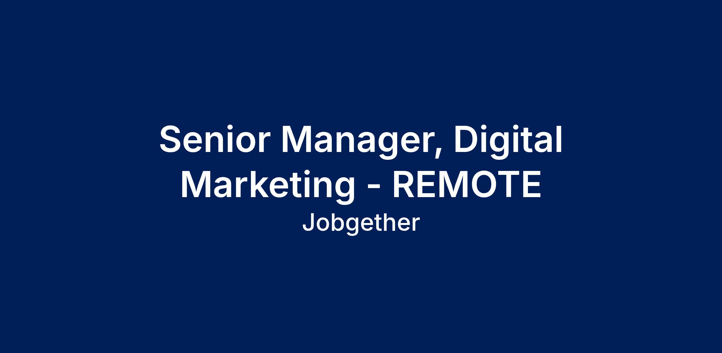 Senior Manager, Digital Marketing - REMOTE