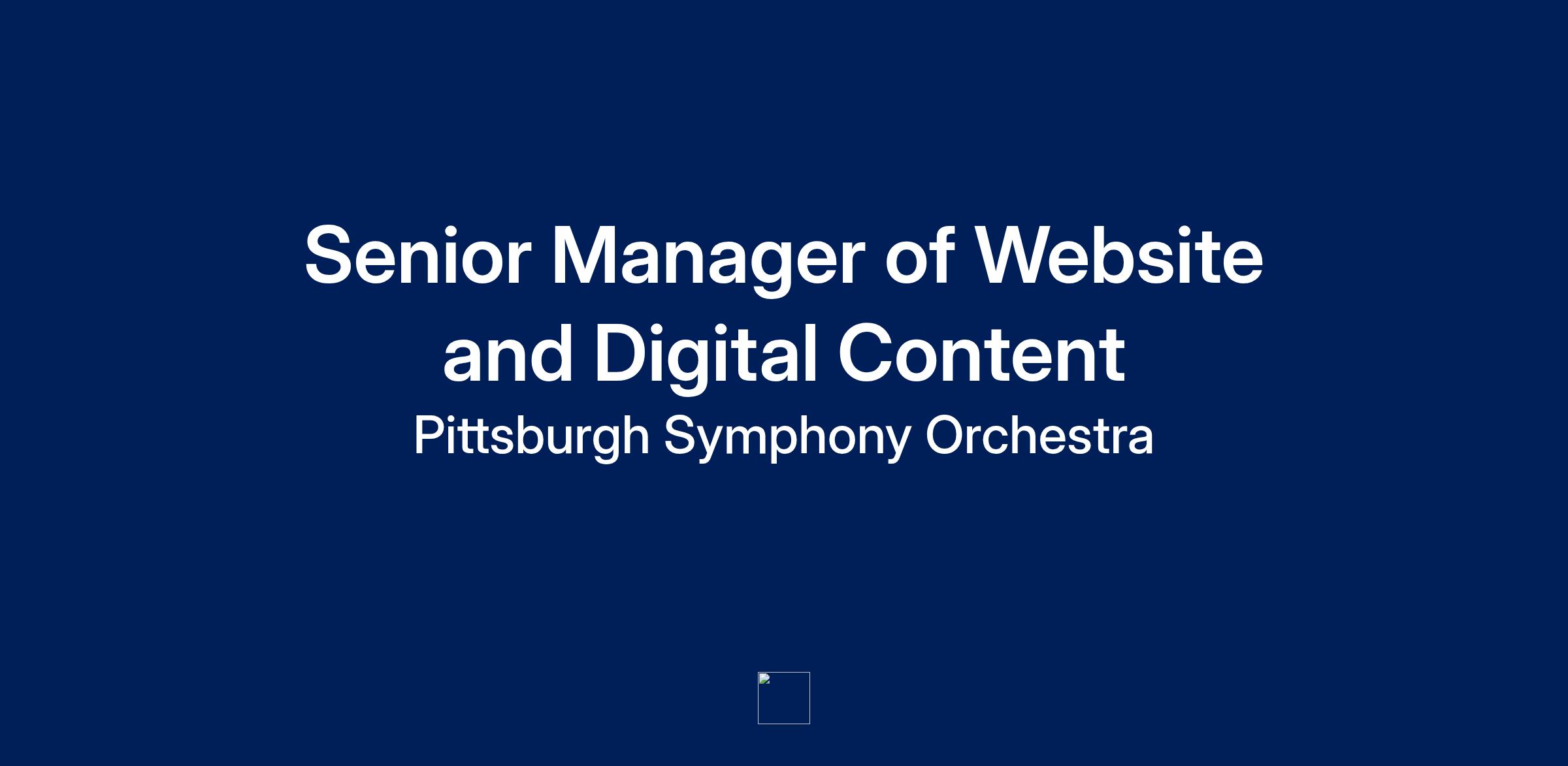 Job Purpose:The Senior Manager of Website and Digital Content is responsible for shaping and maintaining the digital presence of the Pittsburgh Symphony Orchestra across both the website and mobile app. This role ensures that digital platforms serve as dynamic reflections of our artistic mission - supporting ticket sales, donor engagement, community programs, and brand storytelling. The senior manager works collaboratively across departments to deliver a seamless, user-centered online and mobile experience that inspires audiences and advances the organization’s goals.