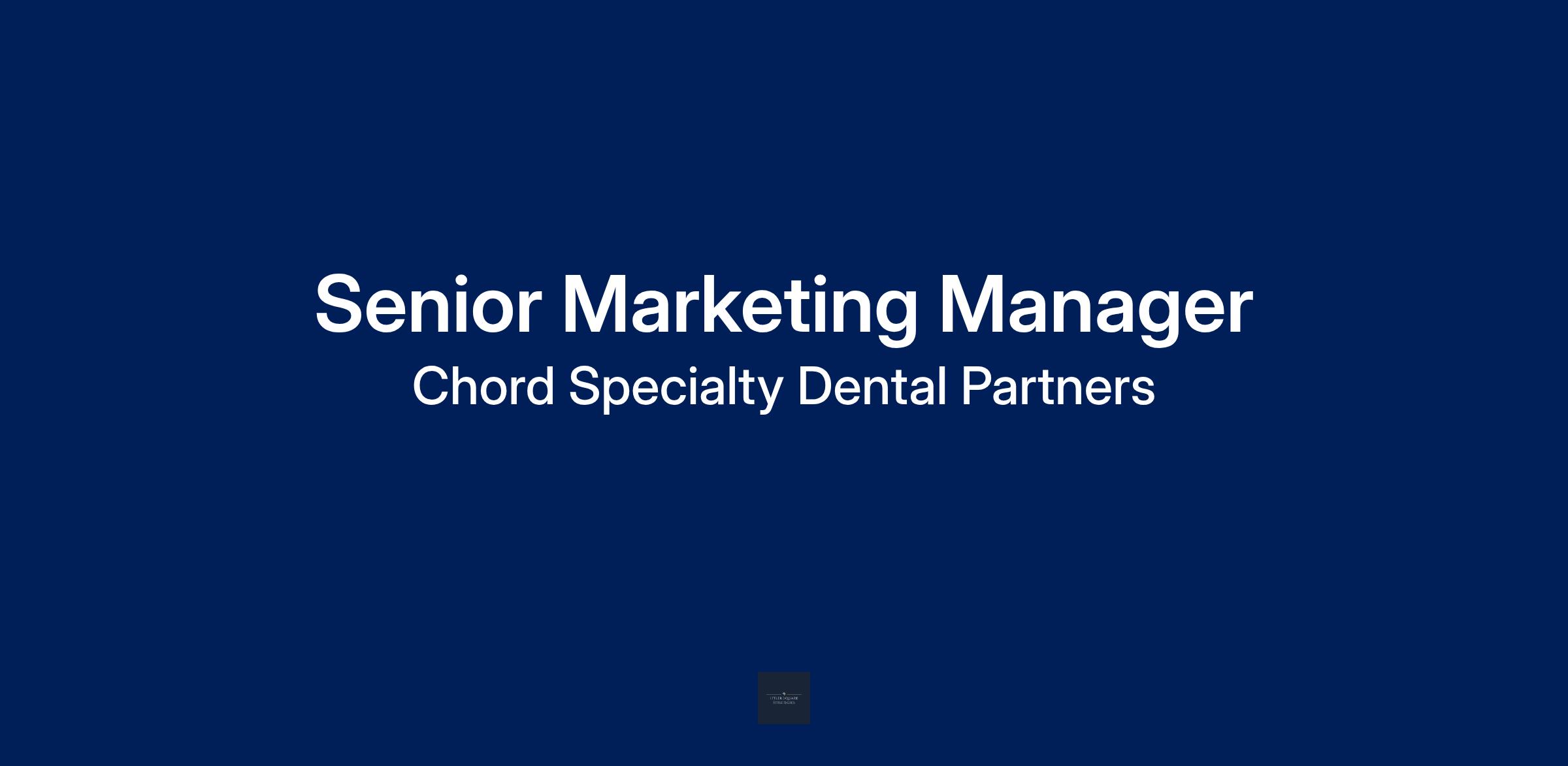 Chord Specialty Dental Partners is a leading Dental Support Organization supporting pediatric dentistry and orthodontic practices across Pennsylvania, New Jersey, Delaware, Tennessee, Indiana, and Virginia.We are seeking a Senior Marketing Manager to help drive growth across our network of specialty dental practices. This role reports to the Senior Vice President of Marketing and will focus on scaling existing locations and supporting new practice launches.