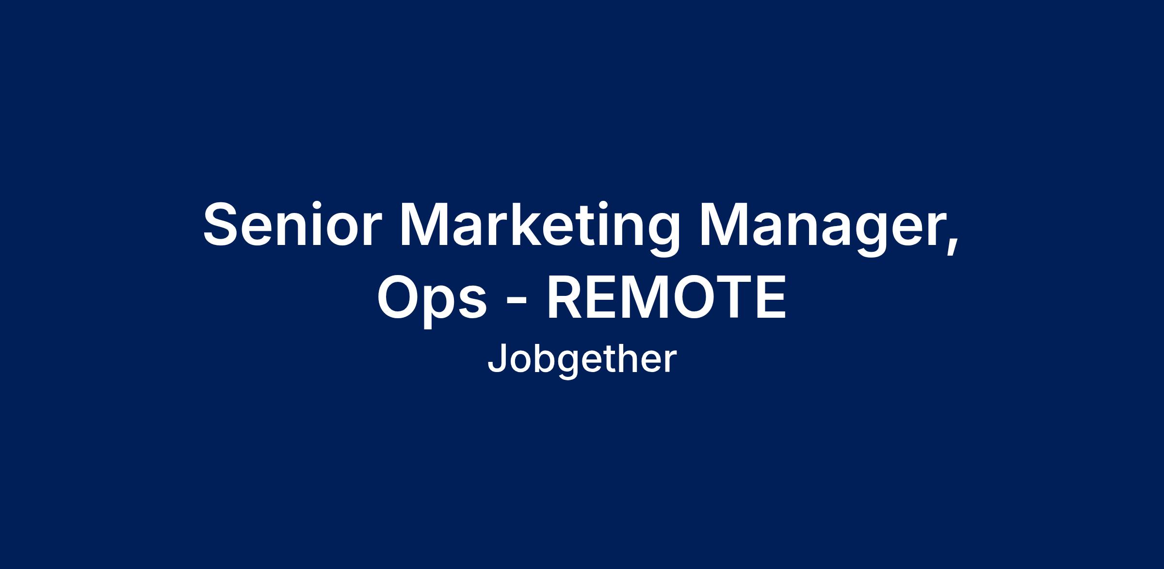 This position is posted by Jobgether on behalf of a partner company. We are currently looking for a Senior Manager, Marketing Operations - REMOTE. In this impactful role, you will lead the development of marketing operations from the ground up, ensuring that the backbone for the organizationβs growth is robust and well-architected. You will be responsible for aligning processes with strategic goals and managing marketing automation systems to deliver accurate data and reporting. Collaborating closely with various stakeholders will be crucial as you drive initiatives that support renewable energy and sustainability. This is a unique opportunity to make a significant impact in a global leader within the clean tech industry.