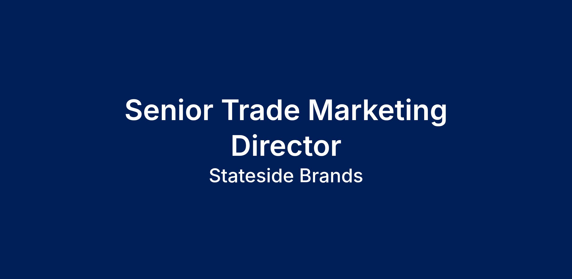 As the Senior Trade Marketing Director at Stateside Brands, you will report directly to the Chief Marketing Officer and be the driving force of our national trade strategy — driving brand growth at the point of purchase and consumption. This role is responsible for translating brand strategy into best-in-class execution across all markets, accelerating awareness, trial, and recruitment across the portfolio. As a key leader across Marketing, Sales, and Distribution networks, you will ensure best-in-class execution nationwide while enabling effective localization by market. Acting as the connective tissue between brand strategy and commercial results, you will own the development and deployment of scalable, insight-driven programs that enable Stateside Brands to win at retail and on-premise.