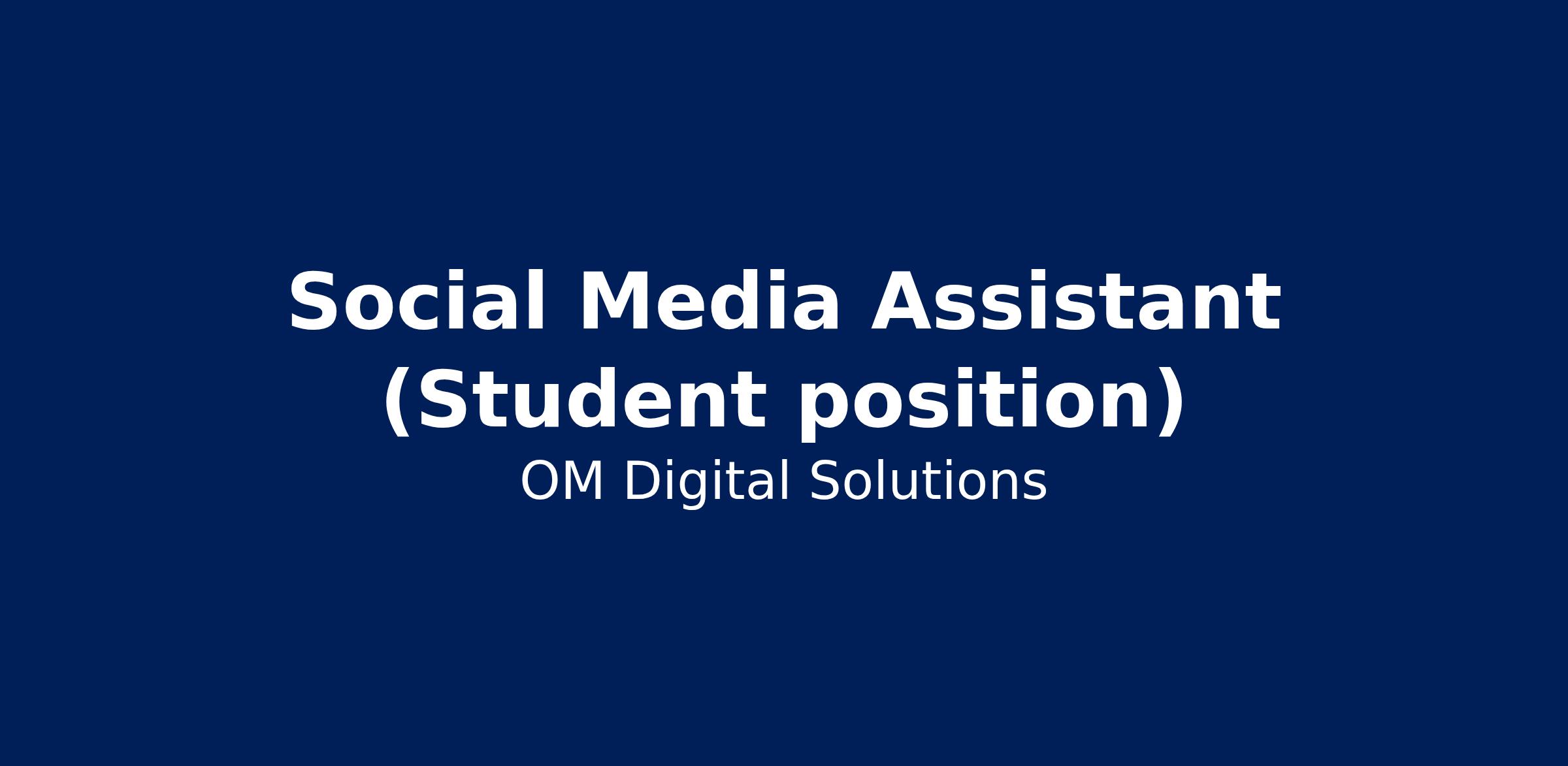 OM Digital Solutions (OM SYSTEM) is seeking a motivated and creative Social Media Assistant to support our Marketing team for the next three months (20 hours per week) in Bethlehem, Pennsylvania.
