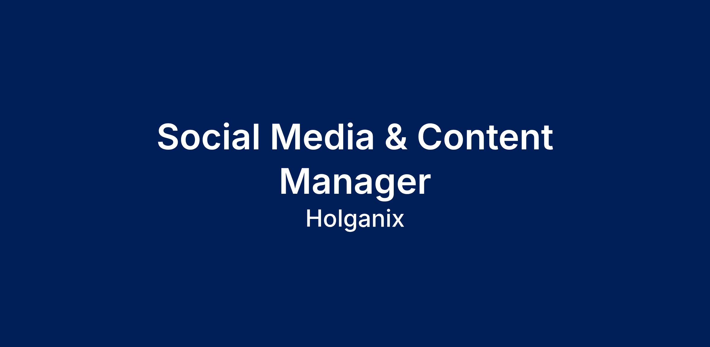 Holganix is looking for a Social Media & Content Manager to grow and strengthen our presence across social platforms.