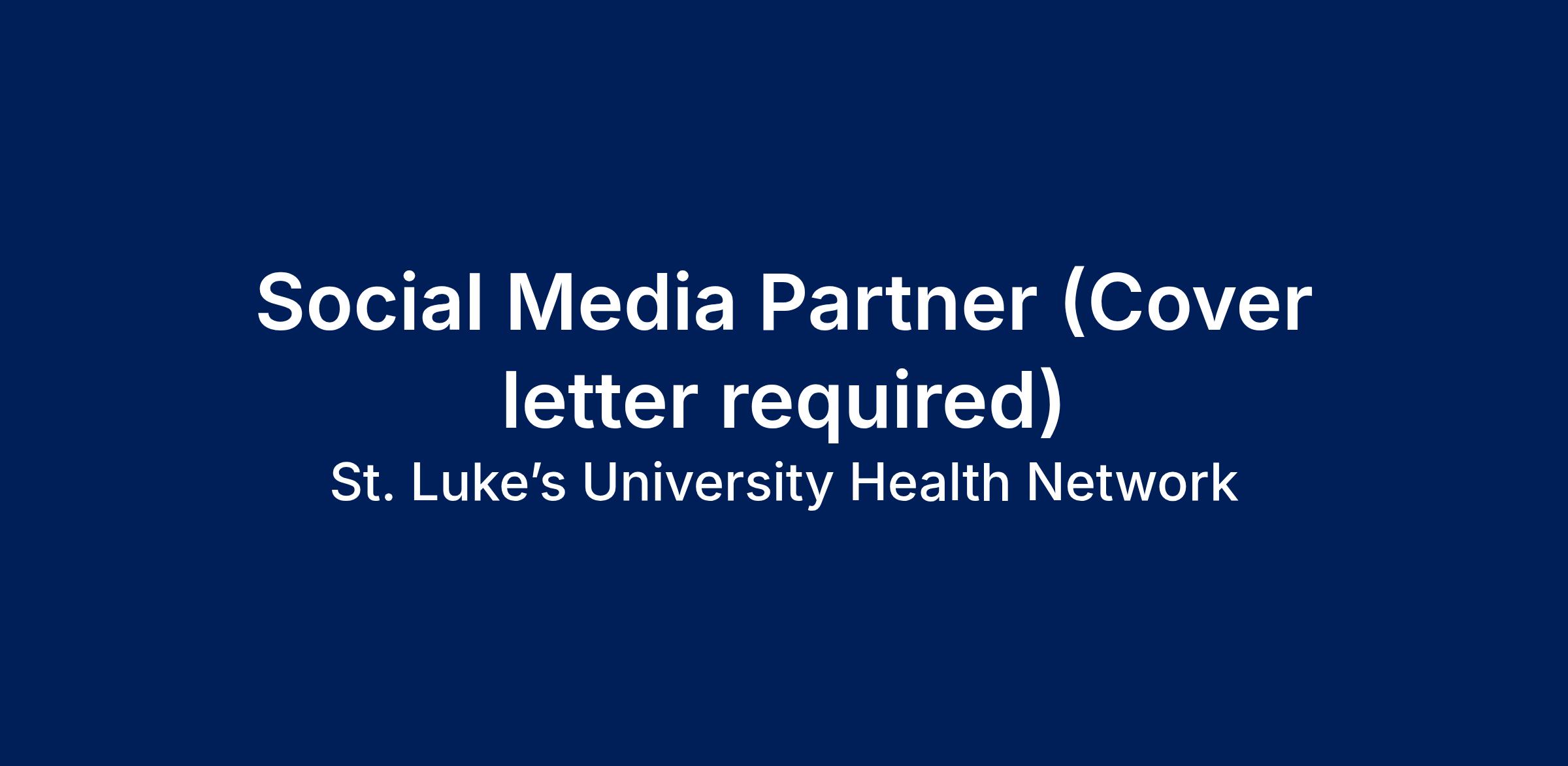 The Social Media Partner will be responsible for assisting in the creation of content for our network's social media platforms, with a focus on Instagram, Facebook, LinkedIn, and X. Manages day to day activities for all SLUHN social media accounts and aligning social media content and strategies to St. Luke’s internal/external marketing communications.