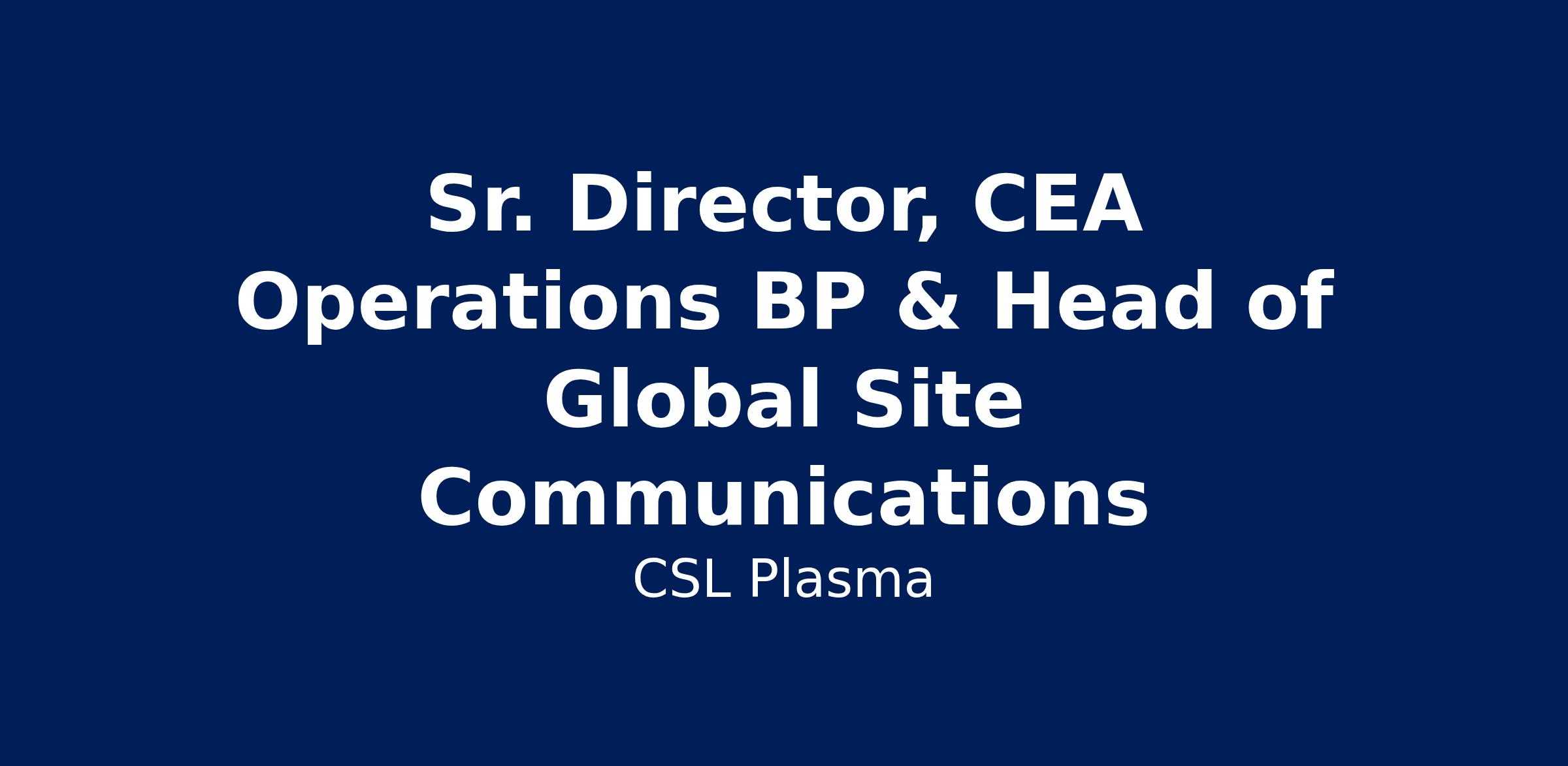 Reporting to the Head, CSL Behring & CSL Vifor CEA, as the Sr. Director, CEA Operations BP & Head of Global Site Communications, you will sit on both the Operations Leadership Team and the CEA Leadership Team and you will integrate strategic communications, stakeholder engagement, and issues/crisis management to reinforce CSL’s reputation as a trusted global biotechnology leader.