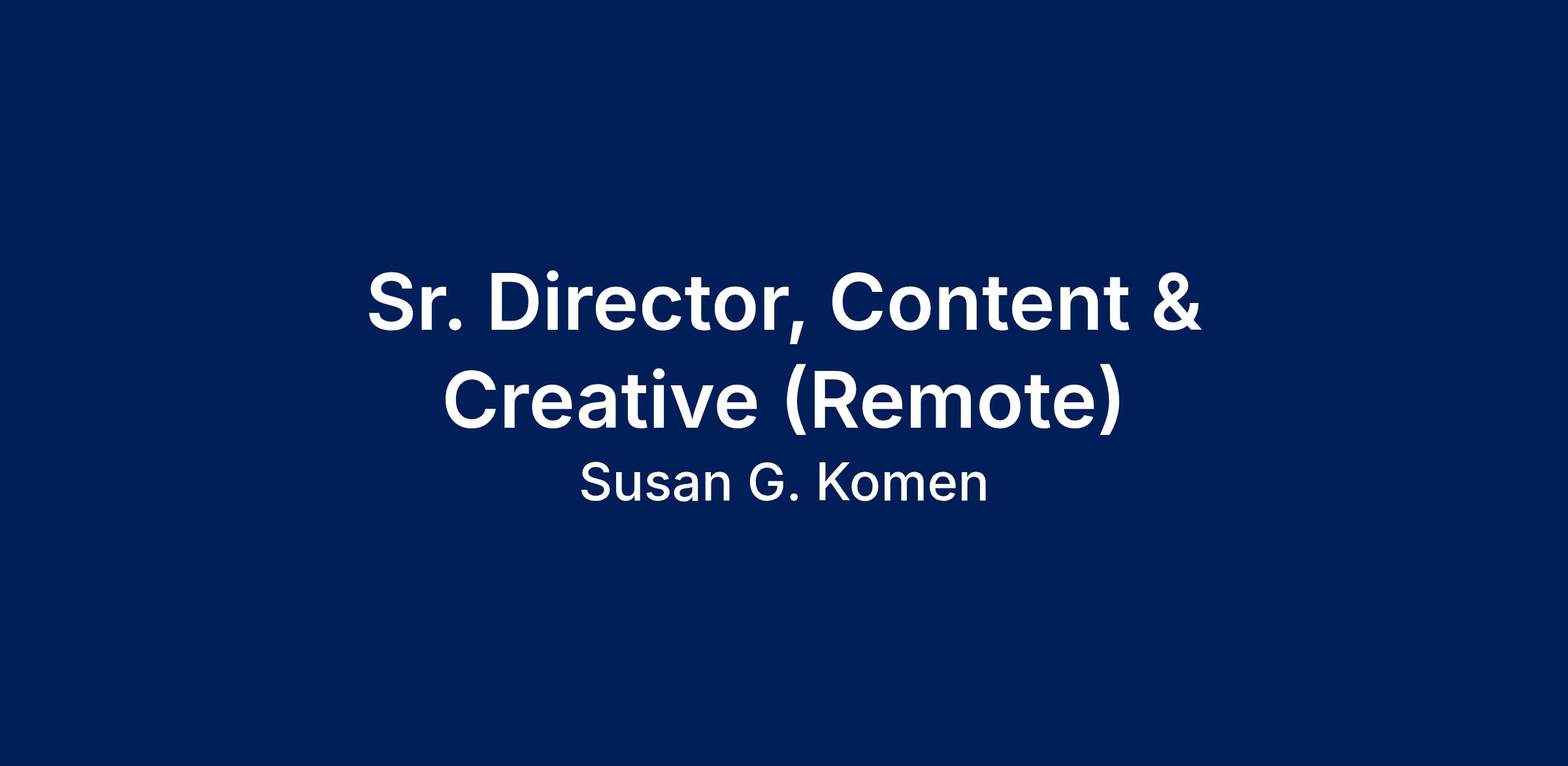 Susan G. Komen brings a 100% virtual working environment, and you can work anywhere within the U.S. We are a force united by a promise to end breast cancer forever. For over 40 years, we've led the way by funding groundbreaking research, community health initiatives and advocacy programs in local communities across the U.S. Susan G. Komen is the ONLY organization that addresses breast cancer on multiple fronts such as research, community health, outreach and public policy initiatives to make the biggest impact against this disease.