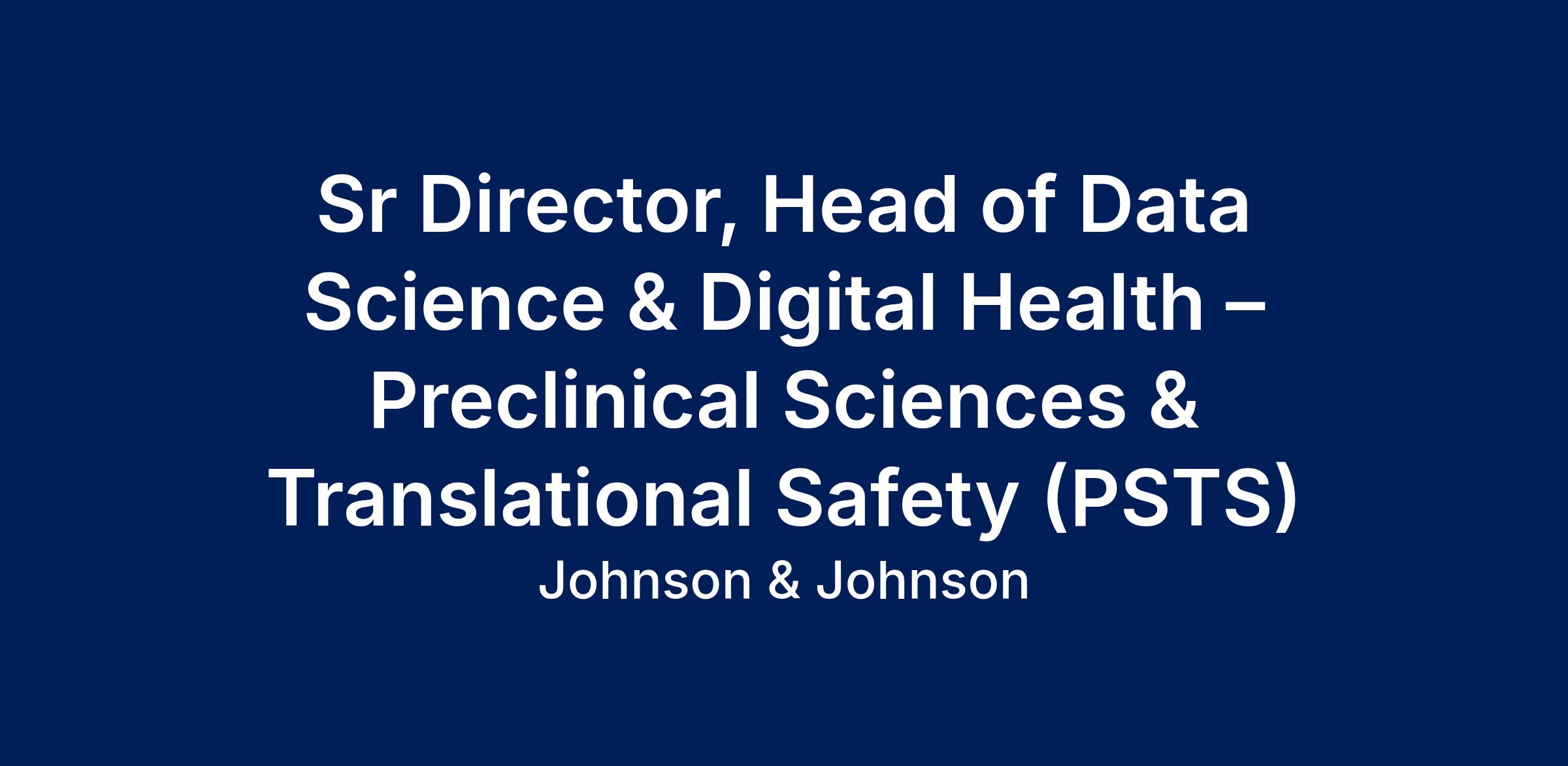 Johnson & Johnson Innovative Medicine is recruiting for a Sr Director, Head of Data Science & Digital Health – Preclinical Sciences & Translational Safety (PSTS). This position has a primary location of Spring House, PA.