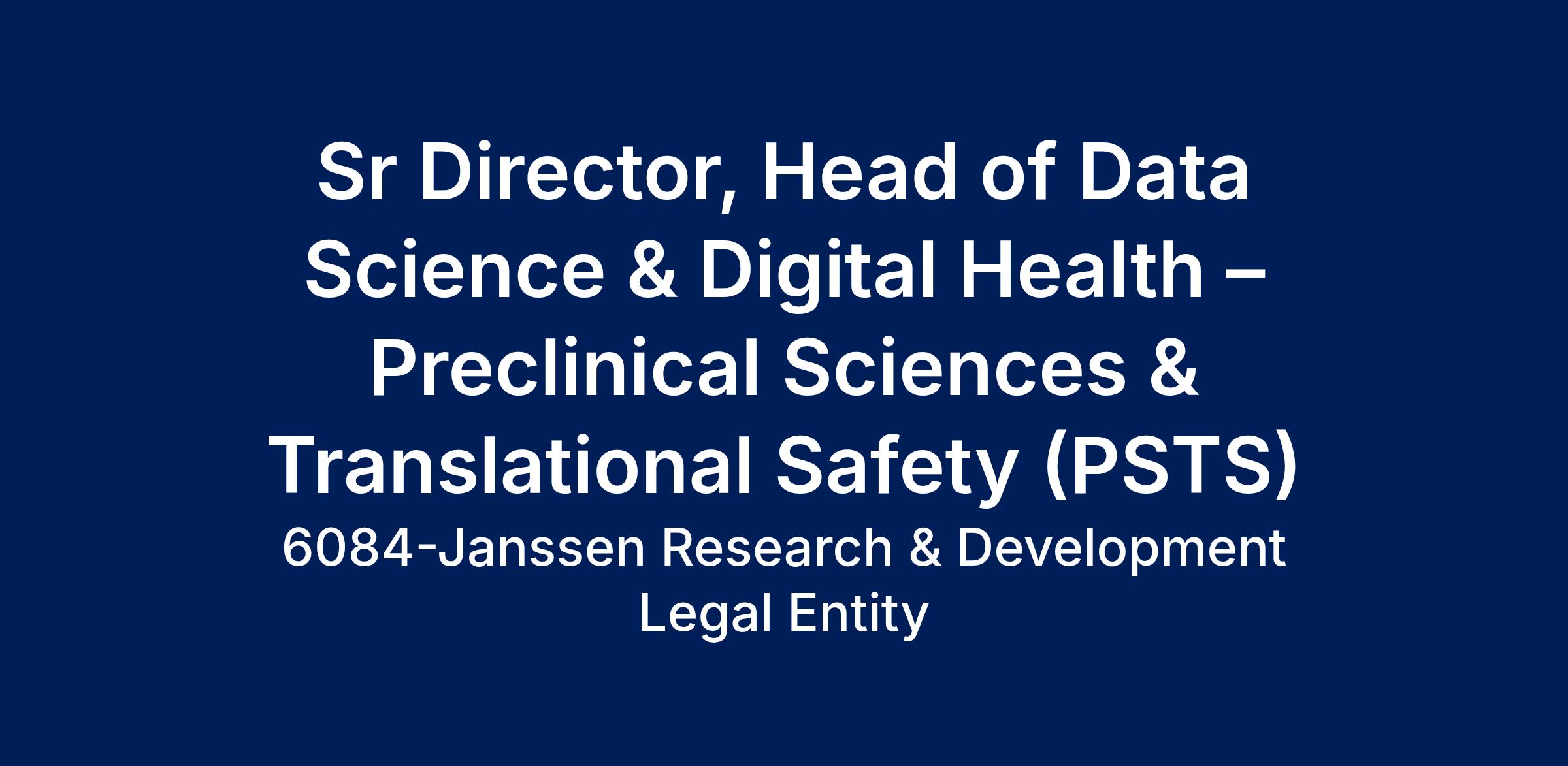 Johnson & Johnson Innovative Medicine is recruiting for a Sr Director, Head of Data Science & Digital Health – Preclinical Sciences & Translational Safety (PSTS). This position has a primary location of Spring House, PA.
