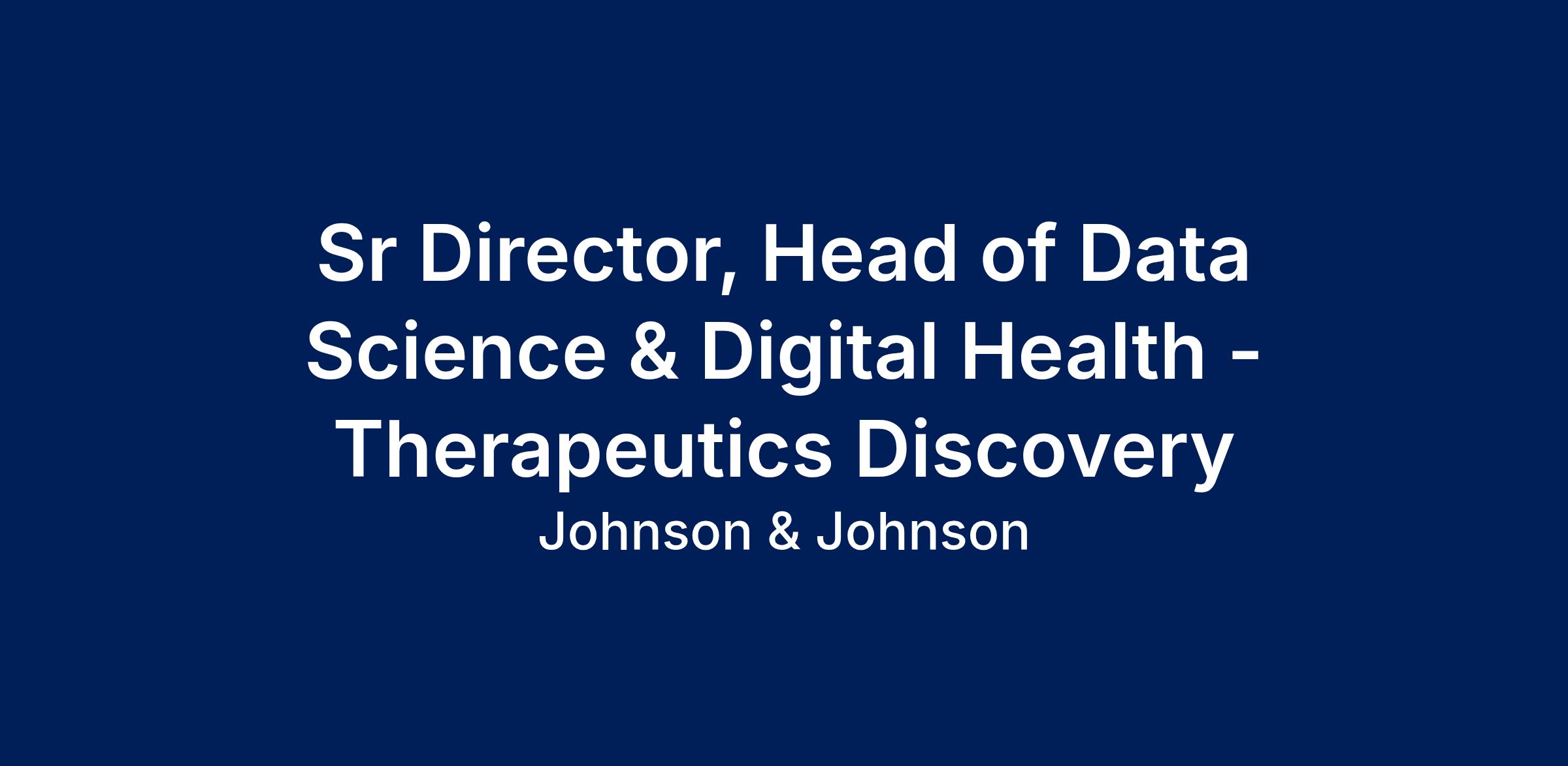 Johnson & Johnson Innovative Medicine is recruiting for a Sr Director, Head of Data Science & Digital Health – Therapeutics Discovery