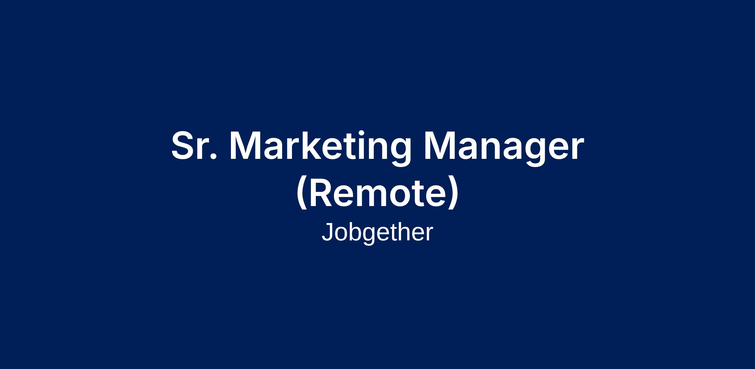 Sr. Marketing Manager (Remote)
