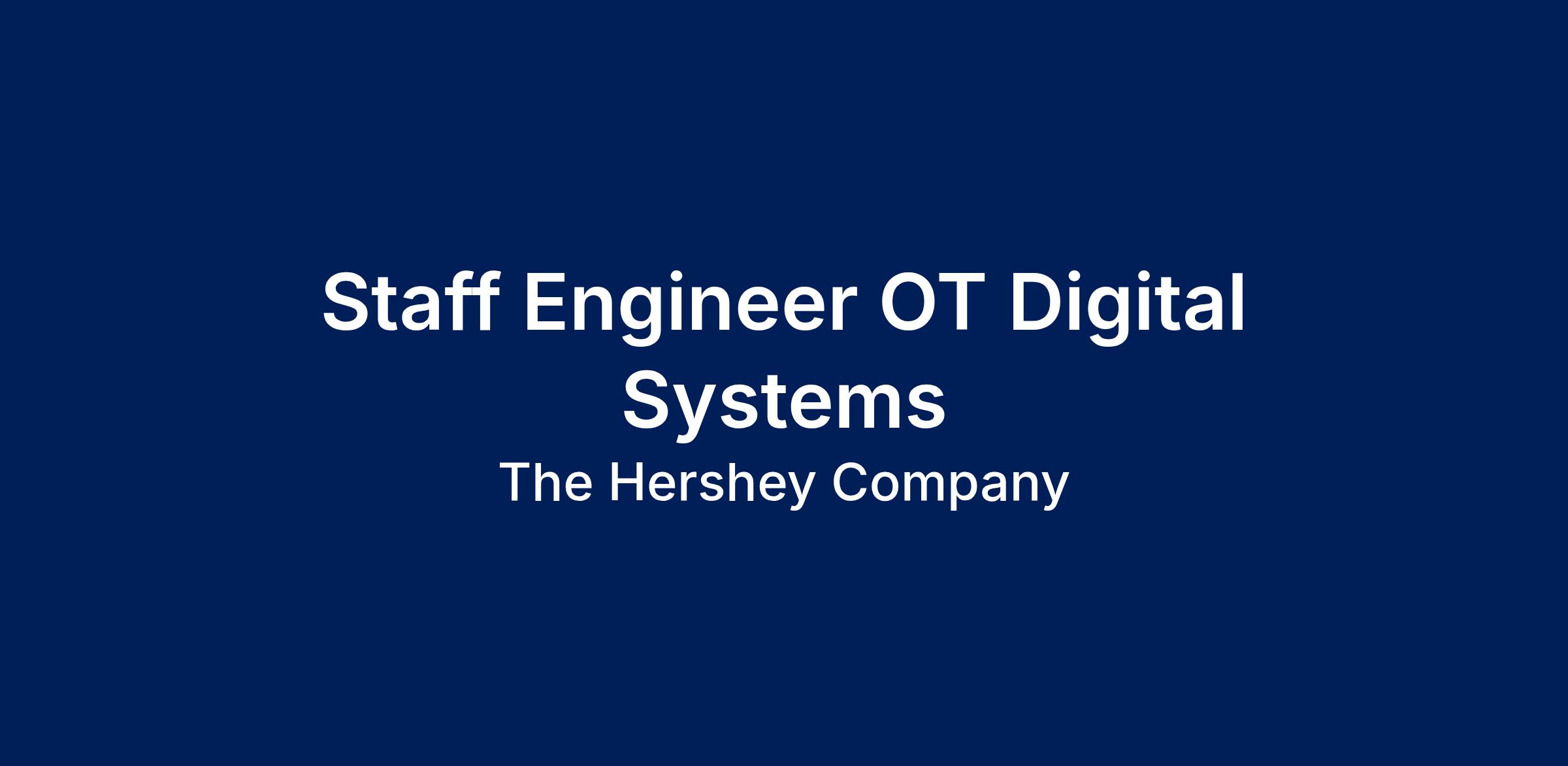The Staff Engineer, OT Digital Systems, works closely with cross functional teams in engineering and Information Technology. This resource helps implement digital manufacturing solutions in support of the Hershey Digital Factory initiative. The successful candidate works with project teams to implement systems and deliver measurable value for Hershey. Reporting to the Senior Manager, OT Digital Systems, this individual helps ensure solutions and their delivery align with Hershey’s Digital Factory Strategy.