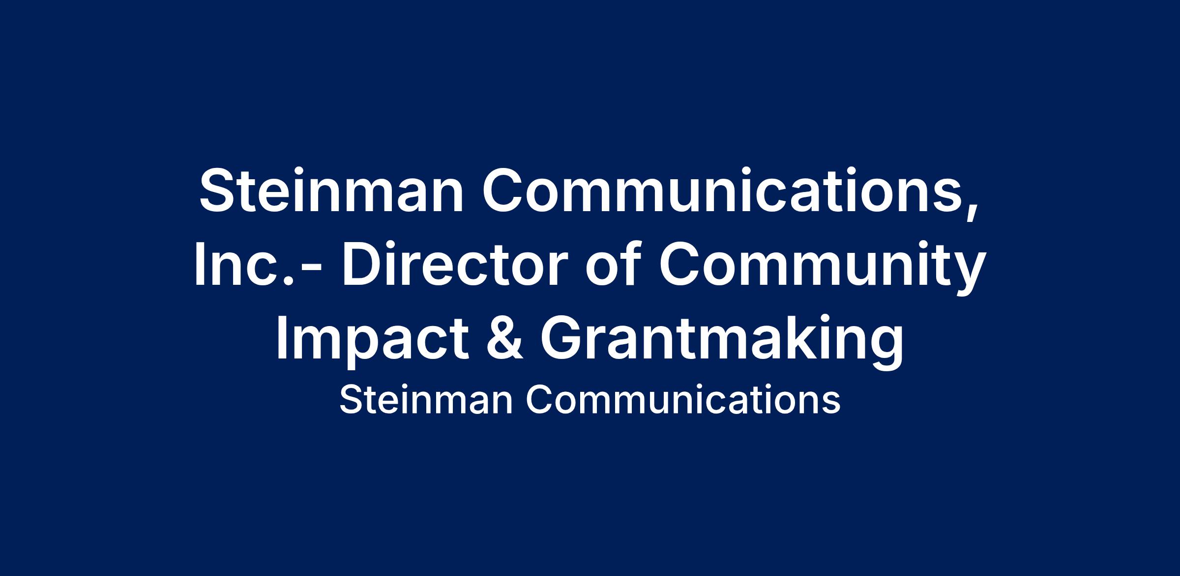 Steinman Communications is seeking a Director of Community Impact & Grantmaking for The Steinman Foundation. Shape the future of Lancaster County at the intersection of education, environment, and community impact! As Director of Community Impact & Grantmaking , you’ll lead high-impact initiatives across three mission-driven organizations—turning collaboration, innovation, and philanthropy into measurable, lasting change.