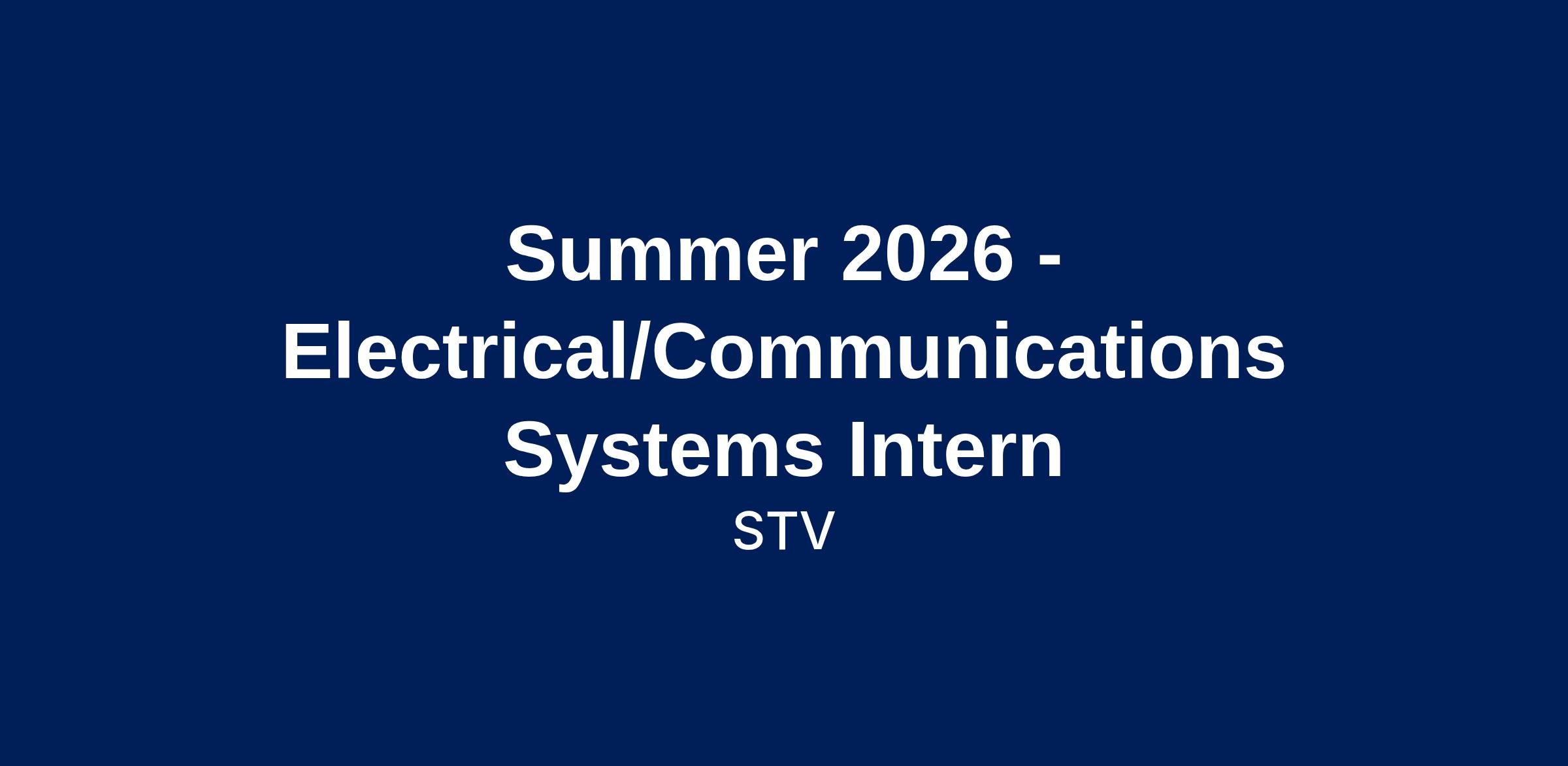 STV is seeking a motivated Electrical/Communications Systems Intern to join our team. This internship offers an excellent opportunity for undergraduate and graduate students interested in gaining practical experience in electrical and communications systems design. You will work under the direction of senior staff on a variety of projects, contributing to essential tasks in design, documentation, and project management. This is a hybrid position requiring at least 3 days in the office each week.