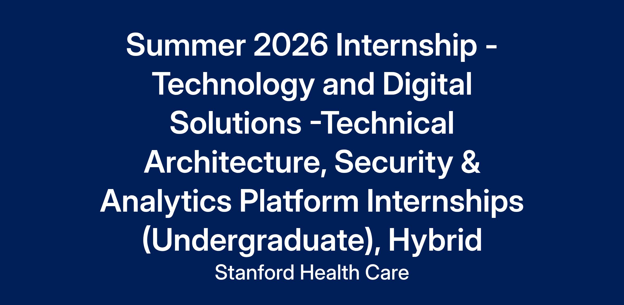 Technology and Digital Solutions at Stanford Health Care offers multiple internship opportunities across various technical disciplines. We encourage you to explore our summer internship page for all available job postings to find the roles that best match your skills and career interests.