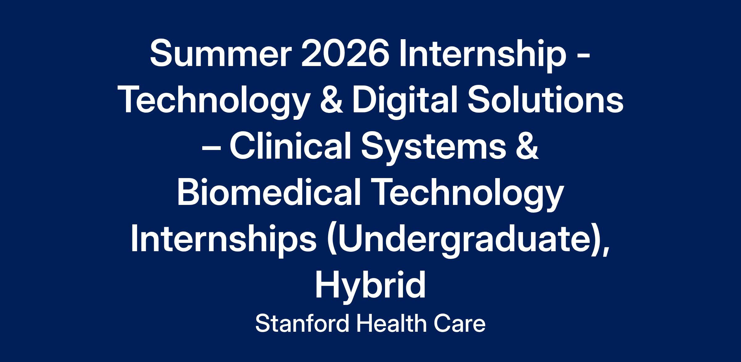 Technology and Digital Solutions at Stanford Health Care offers multiple internship opportunities across various technical disciplines. We encourage you to explore our summer internship page for all available job postings to find the roles that best match your skills and career interests.