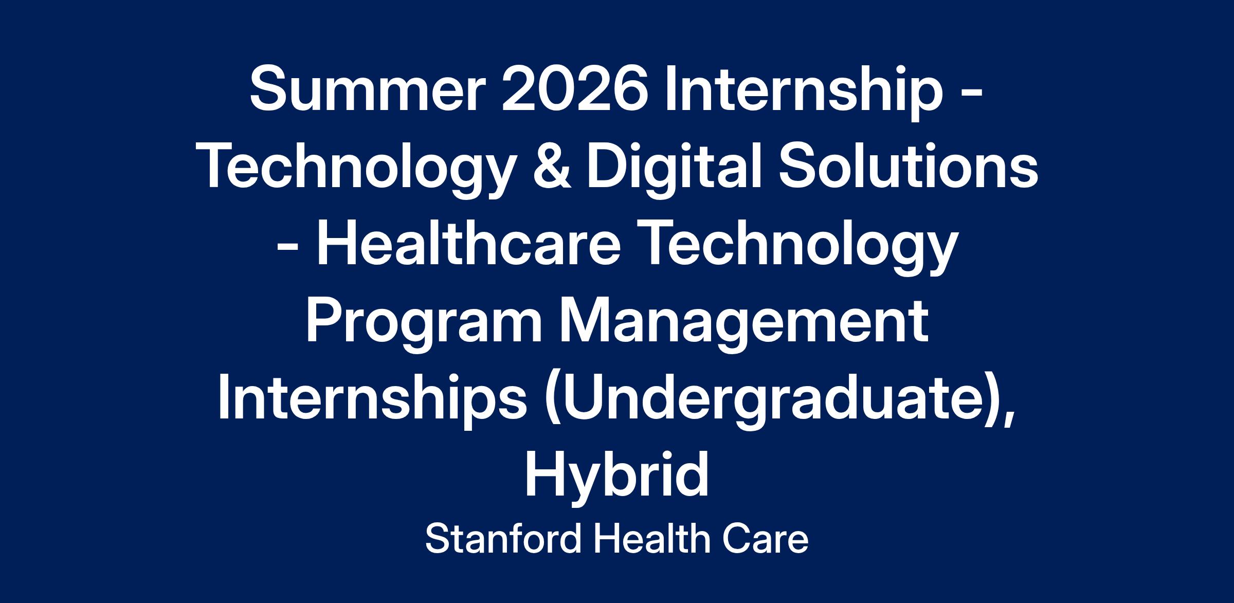Day - 08 Hour (United States of America)Technology and Digital Solutions at Stanford Health Care offers multiple internship opportunities across various technical disciplines. We encourage you to explore our summer internship page for all available job postings to find the roles that best match your skills and career interests.