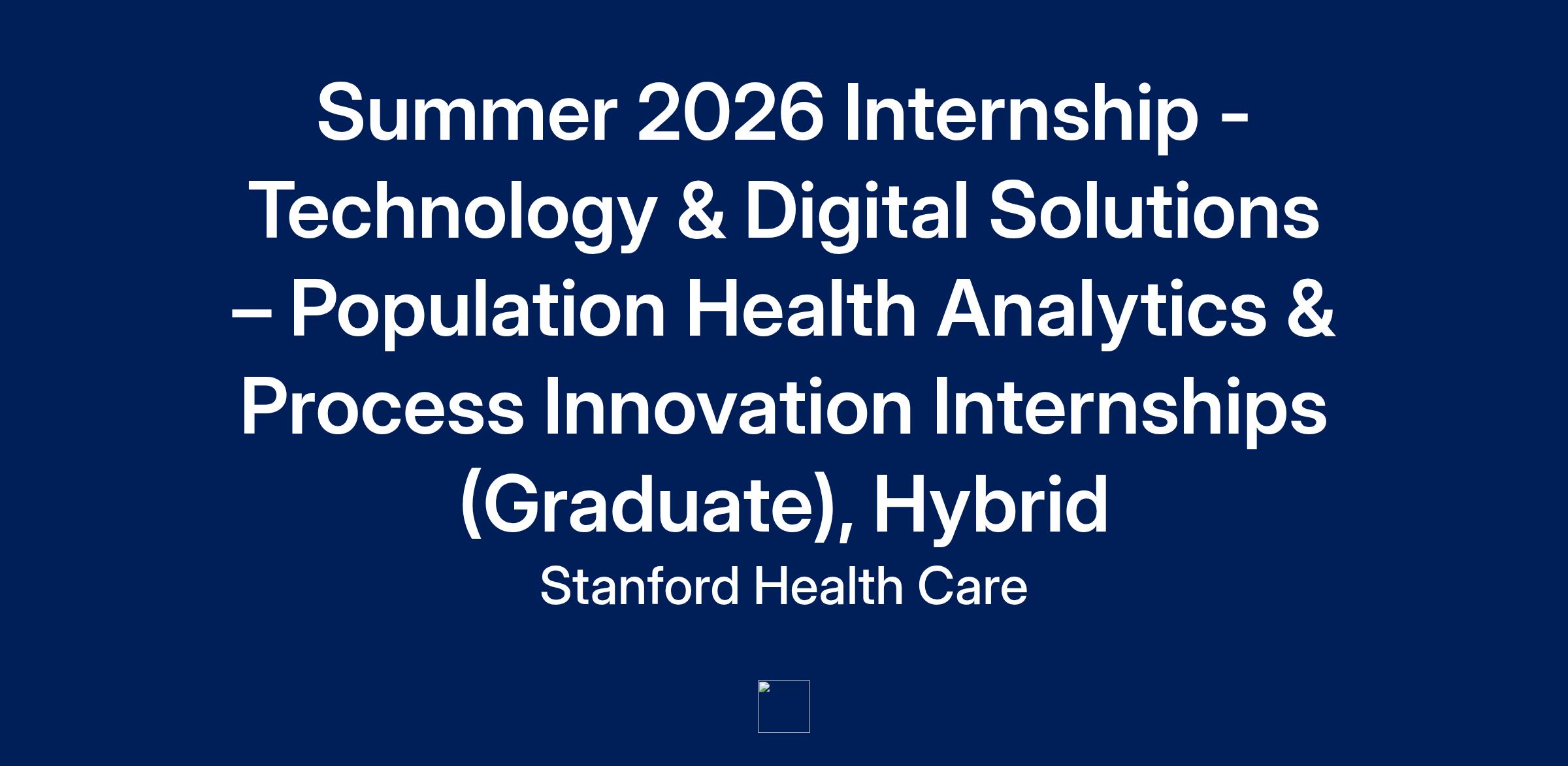 Technology and Digital Solutions at Stanford Health Care offers multiple internship opportunities across various technical disciplines. We encourage you to explore our summer internship page for all available job postings to find the roles that best match your skills and career interests.