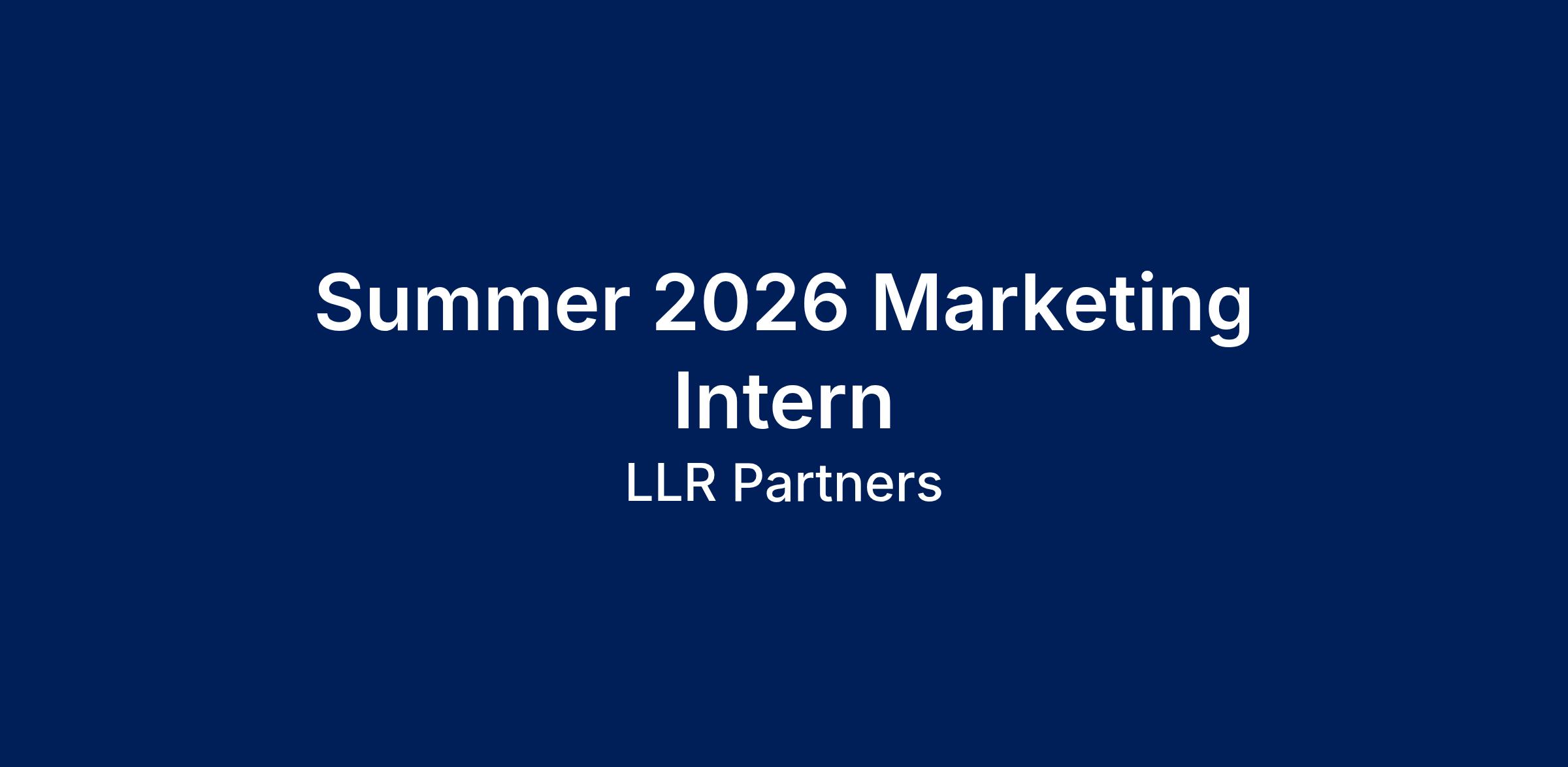LLR Partners is seeking a talented and motivated junior undergraduate student to join our Marketing team for Summer 2026. The Marketing team champions the LLR brand and is responsible for digital and experiential marketing in support of our investment pipeline. Marketing efforts supported by this internship will help LLR earn the trust of exciting, growing companies looking to raise capital.