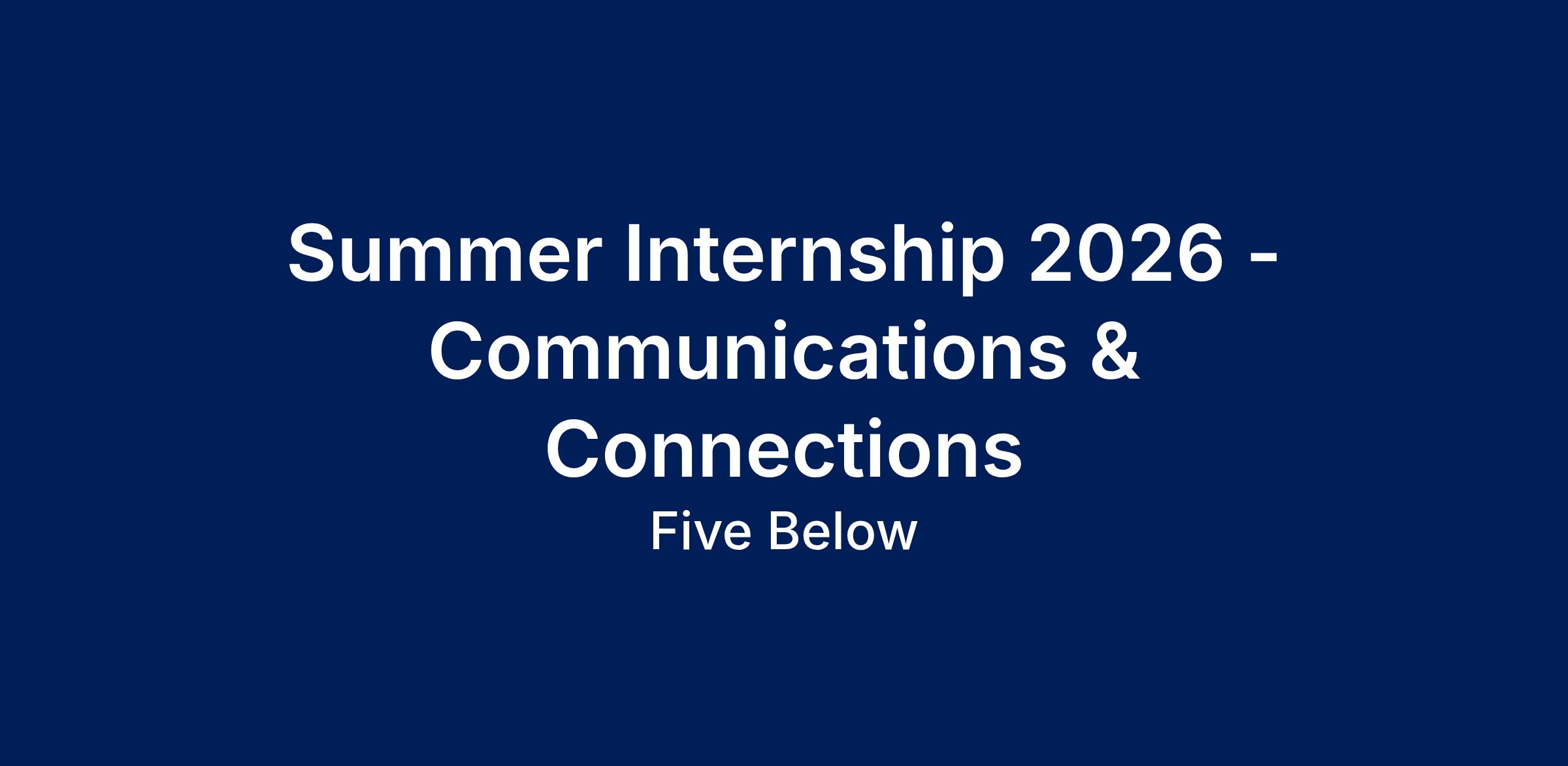 Five Below Summer Internship Program is ON! Our limited open positions for Summer 2026 focus on company strategic initiatives in the exciting environment of value-driven, fun-focused retail. We are seeking energetic, responsible go-getters with innovative ideas, ready to actively participate in company initiatives.