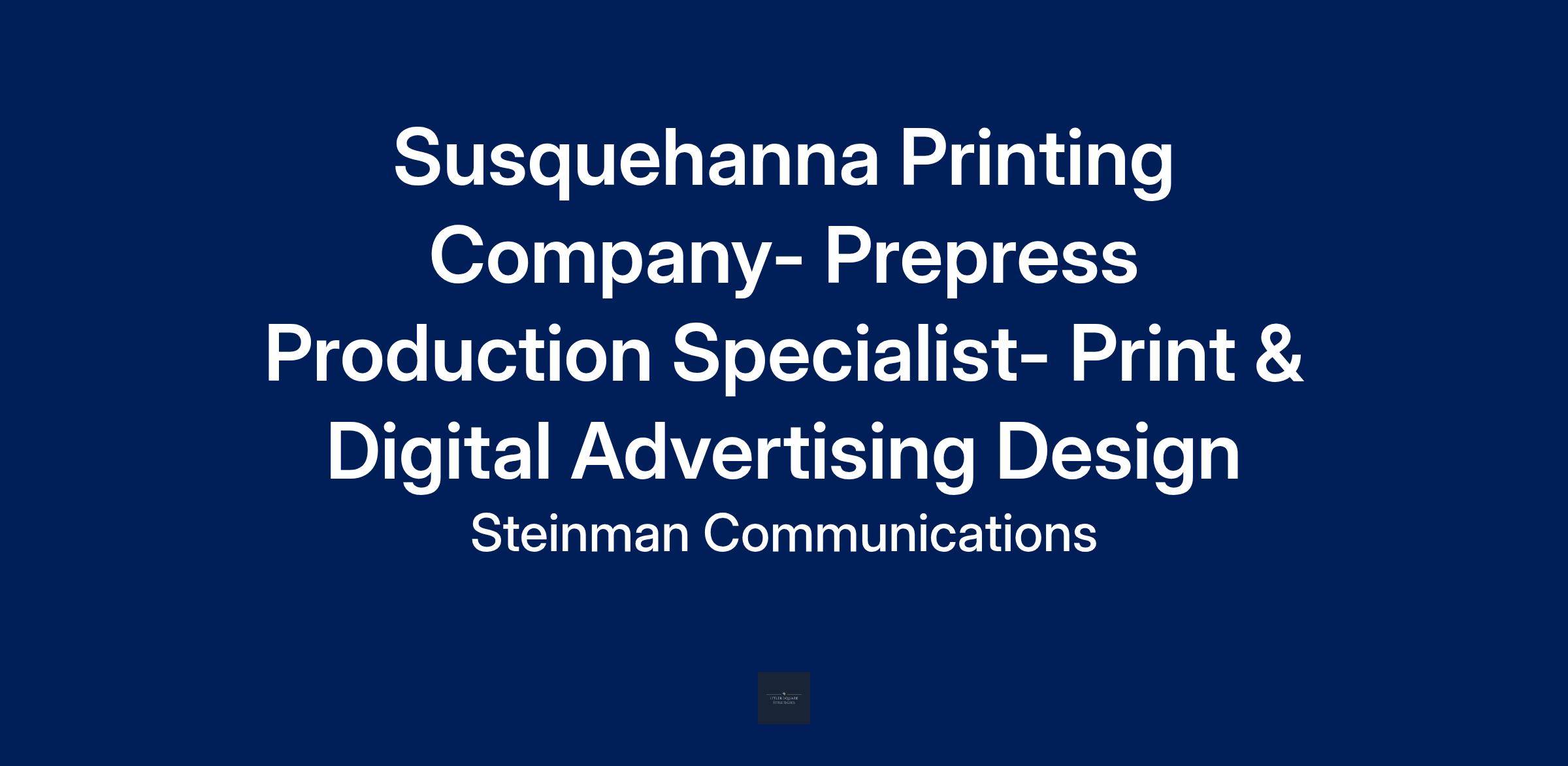 Susquehanna Printing Company is looking for a talented and detail-oriented Prepress Production Specialist to join our team! In this role, you’ll play a key part in producing high-quality print and digital advertising materials that meet exacting production standards. You’ll build visually compelling display ads using InDesign in AD-Track for print and Photoshop for web-based formats, ensuring that every piece is accurate, consistent, and press-ready. The ideal candidate combines technical expertise with creative problem-solving- someone who can type and format precise ad copy, process and edit customer-supplied digital files, and proof every detail for accuracy in layout, color, and content. You’ll work closely with our sales and production teams to efficiently update existing ads and deliver polished, professional results on tight deadlines.