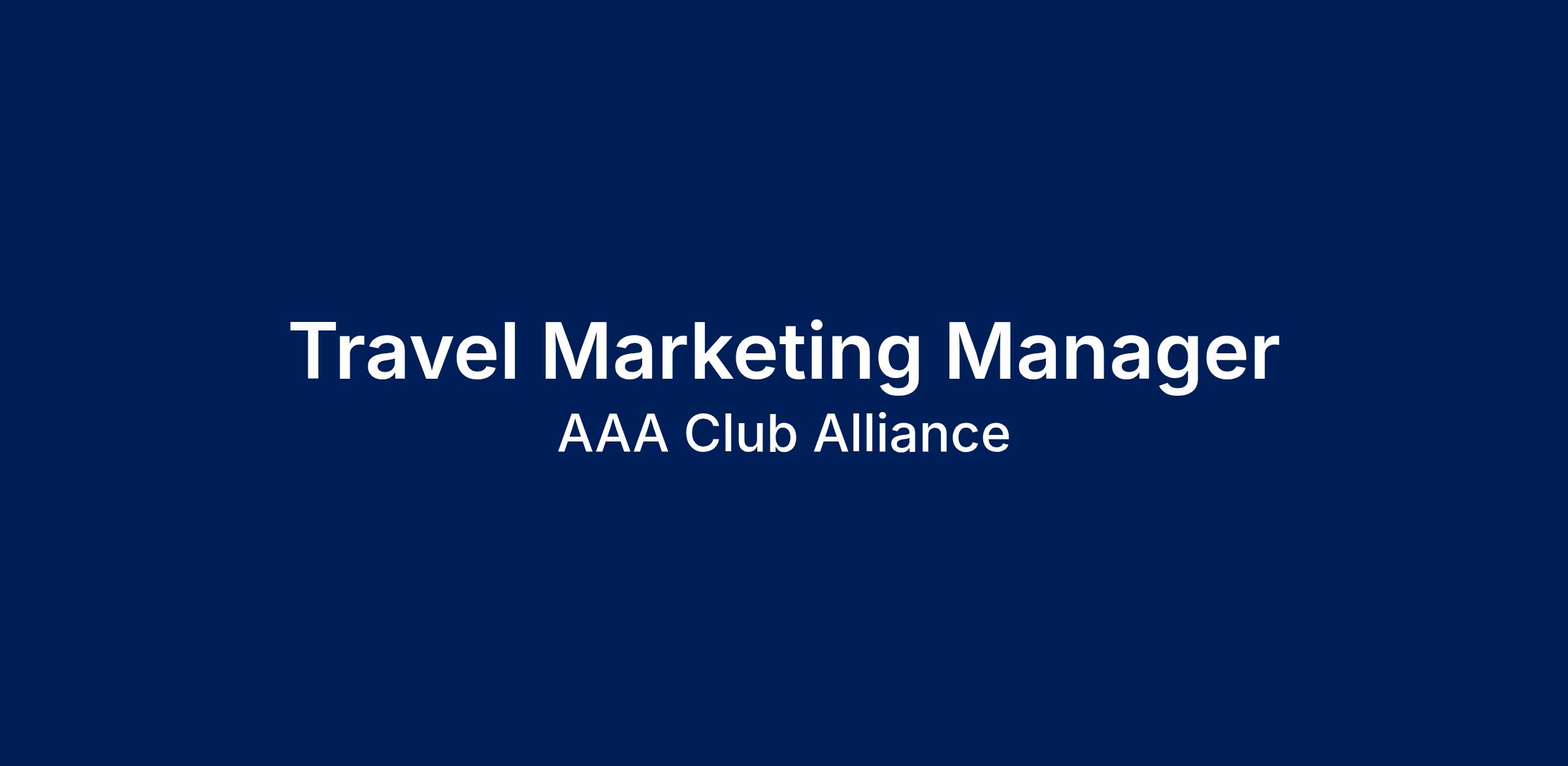 AAA Club Alliance is hiring for a Travel Marketing Manager to join our team!