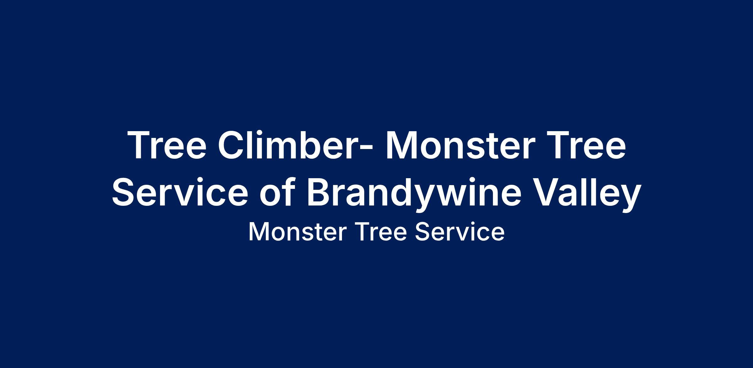 If you are looking to be part of a team that is growing and changing the Tree Care Industry in a positive way while providing great career opportunities, we want to speak to you! Monster Tree Service of Brandywine Valley currently has an opening for a Tree Climber.