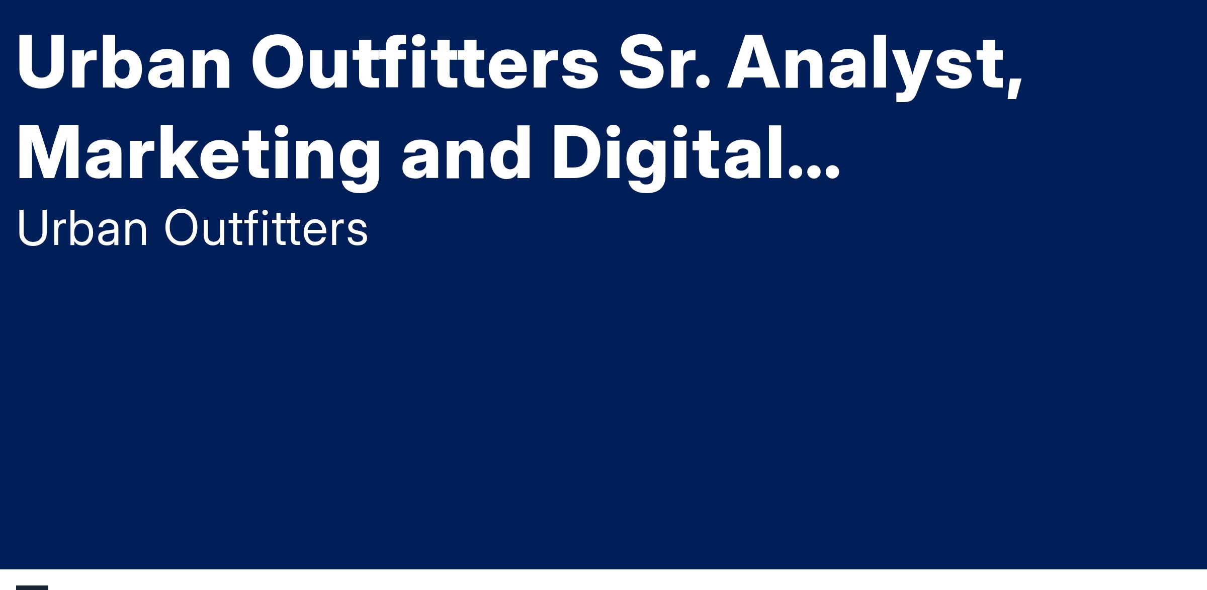 Urban Outfitters is seeking a natural leader who has a demonstrated history in using data to inform marketing and site design decisions. You are a strategic problem solver and can take ambiguous questions and turn them into actionable insights. You are curious and love to immerse yourself in data to make decisions under uncertainty. You are organized and attentive to detail, and value precisely and clearly documenting analyses. You enjoy cross team collaboration and digital experimentation.