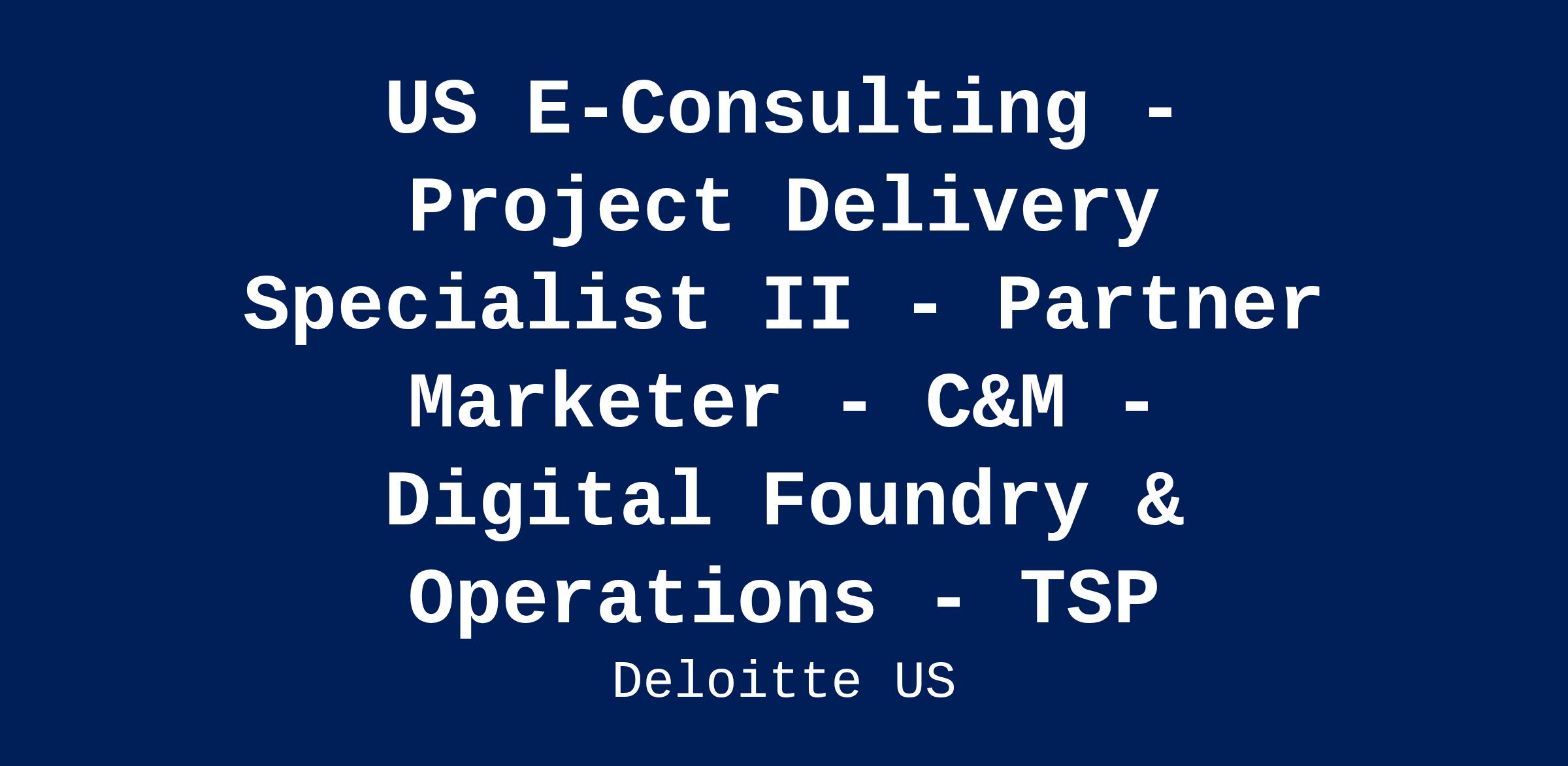 Are you an experienced, passionate pioneer in technology who wants to work in a collaborative environment? As an experienced Partner Marketer, you will have the ability to share new ideas and collaborate on projects as a consultant without the extensive demands of travel. If so, consider an opportunity with Deloitte under our Project Delivery Talent Model. Project Delivery Model (PDM) is a talent model that is tailored specifically for long-term, onsite client service delivery.
