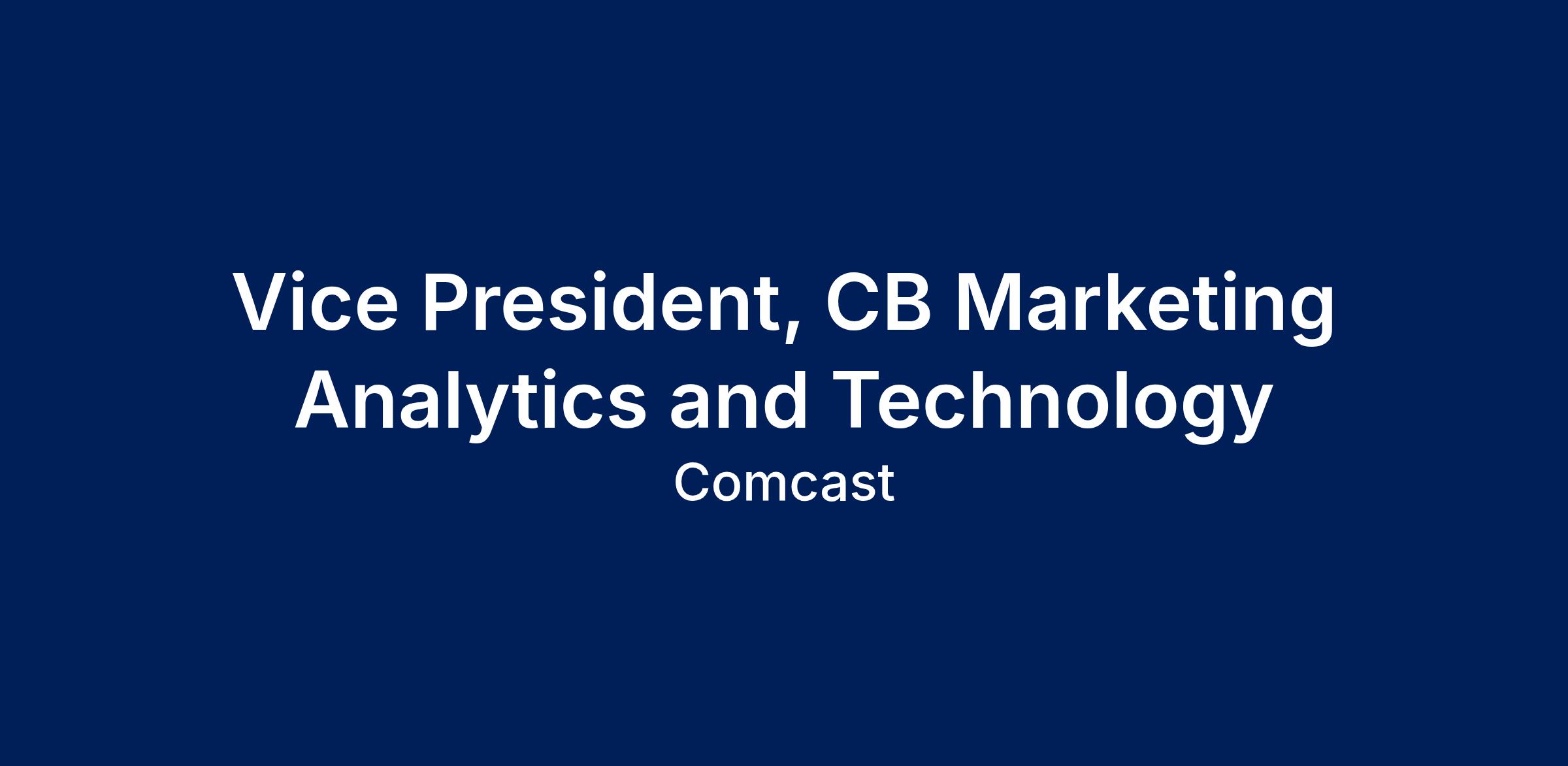 The Vice President, CB Marketing Analytics & Technology is the enterprise leader responsible for shaping how Comcast Business leverages data, analytics, insights, and marketing technology to drive marketing strategy, execution, and performance. This role defines and leads the vision, strategy, and optimization of the data ecosystem—including the data warehouse, analytics practices, and marketing technology stack—to maximize marketing effectiveness, customer insight, and revenue growth.